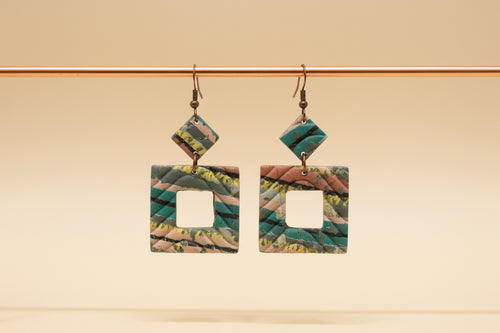 Coral & Teal Marble Earrings -